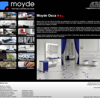 Moyde Osca ha confiado en INPQ para lanzar su proyecto en Internet, y disponer de esta forma la empresa de una Web corporativa no disponible hasta el momento en www.moydeosca.com A través de un flash de inicio a modo de presentación, podemos acceder al sitio Web de una forma distinta, un espacio en Internet con un diseño diferente a lo habitual, destacando mucho la imagen sobre el resto de cosas, algo que en todo momento cuida Moyde Osca, tanto en Internet como en el día a día, algo que se ve en las espectaculares fotografías de sus productos. Además de reformar el hogar, son expertos en baños, cocinas, sanitarios, electrodomésticos, calefacción, climatización, cerámica o accesorios de baño para Huesca, provincia de Huesca y alrededores. De la misma forma se dedican a la albañilería, carpintería, electricidad y fontanería, siendo una empresa lider en el acondicionamiento de locales comerciales o naves industriales. La Web dispone también de un apartado donde se mostrarán los trabajos realizados, totalmente administrabe por Moyde Osca, donde se podrá ver el buen hacer de esta empresa con más de 50 años de experiencia. Todo para la reforma del hogar está en Moyde Osca, y Moyde Osca está desde estos momentos en Internet. www.moydeosca.com