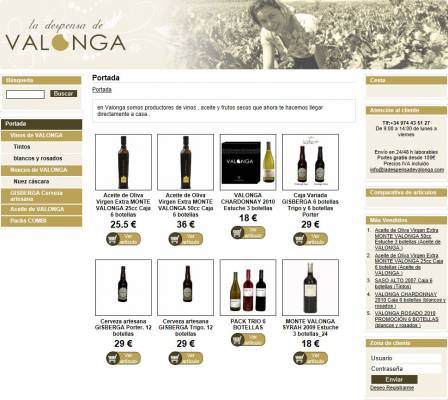 Bodegas Valonga, de la mano de INPQ, ha inaugurado en Internet su nuevo portal Web de venta online www.ladespensadevalonga.com Todos los productos de su bodega, tanto vinos, como aceites, frutos secos sobretodo nueces o cerveza artesanal, pueden encontrarse en su nuevo portal de venta directa. La administración del sistema es total, dado que se pueden modificar todos los contenidos, tanto textos como imágenes, que el portal dispone. Una vez se accede a un artículo, su información es muy completa, con textos descriptivos, fotos ampliables, o relación de características a través también de texto o de iconos identificativos que facilitan la lectura. También existe la posiblidad de inclusión de videos. También dentro de un mismo artículo podemos encontrar productos que haya con características similares al que estamos viendo. Si quieres productos propios del Valle de Cinca en Huesca, ya sabes donde encontrarlos: www.ladespensadevalonga.com