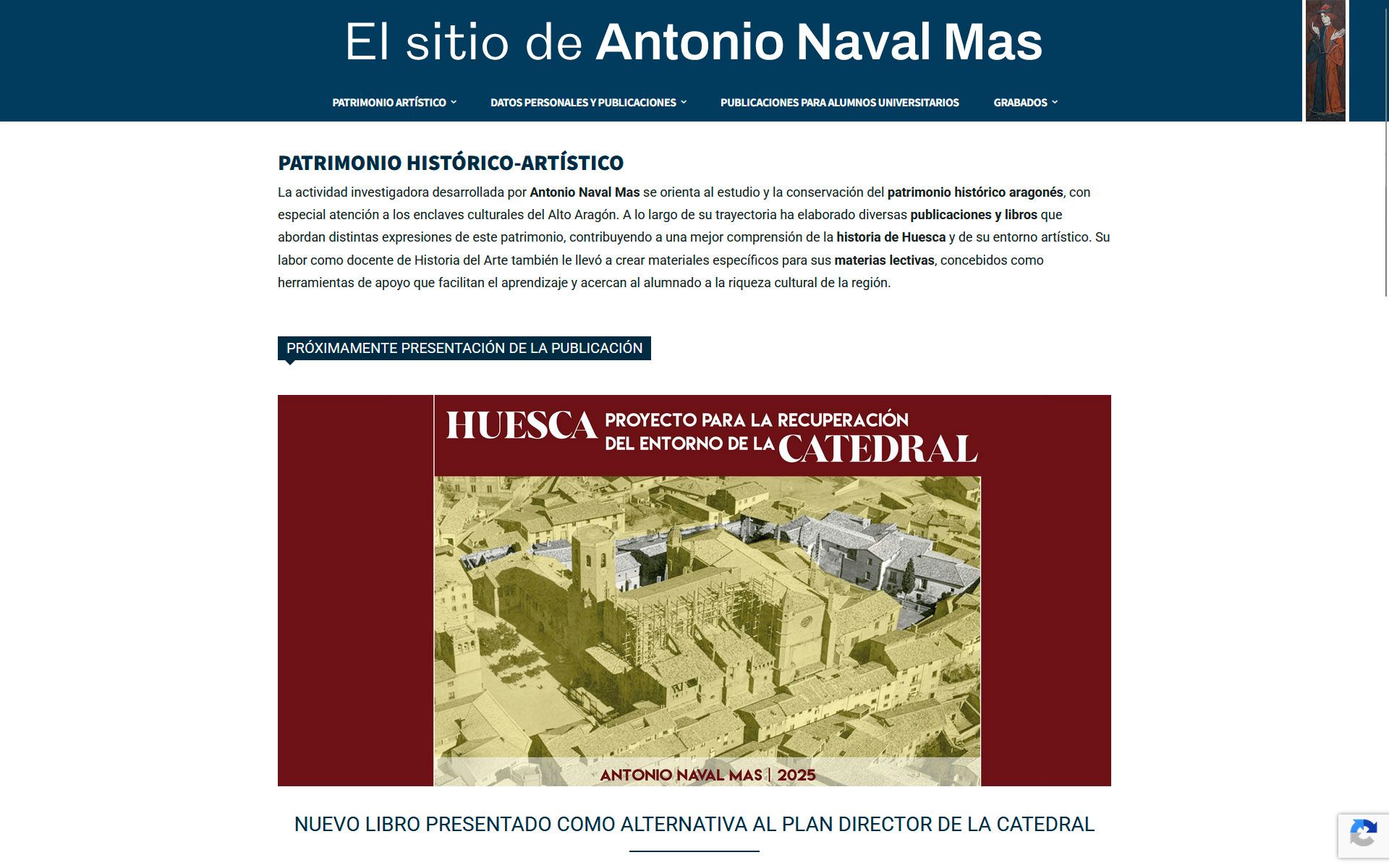 Presentamos el nuevo sitio Web de Antonio Naval Mas en www.antonionavalmas.net, un espacio en internet donde se habla del patrimonio histórico artístico aragonés, con mucha información de la historia de Huesca así como material lectivo de interés.